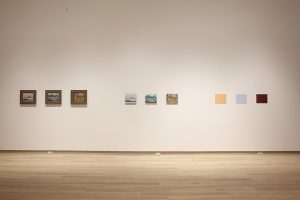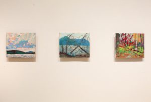 "Morning Replica"; "Canoe Lake Replica"; "Red Sumac Replica", oil on board, 8.5x10.5 in, 2024, painted by Jessica Joyce, photo: Becky Comber