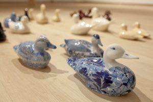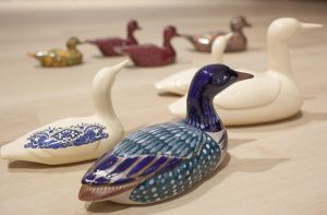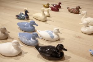 "The Canadians", collected ceramic ducks, mallards & loons, 2024-ongoing, photo: Becky Comber