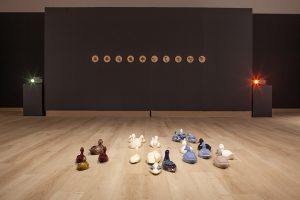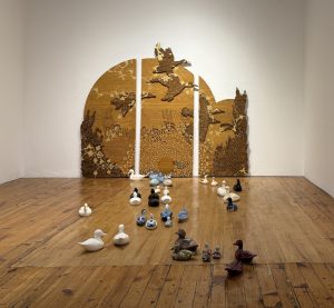 Front: "The Canadians", collected ceramic ducks, mallards & loons, 2022-ongoing