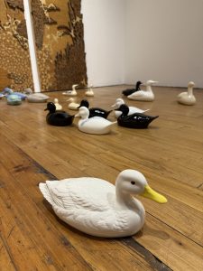 "The Canadians", detail, collected ceramic ducks, mallards & loons, 2022-ongoing