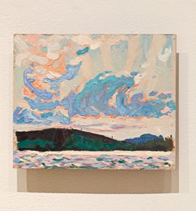 "Canoe Lake Replica", oil on board, 8.5x10.5 in, 2024, painted by Jessica Joyce, photo: Becky Comber