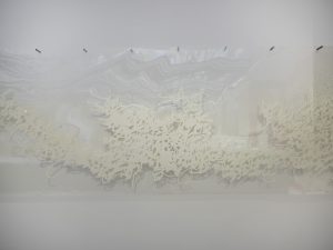 “My state has gone beyond every desire and yearning”, detail, Starched fabric, approx. 17’ long, 2008, Red Head Gallery, Toronto, ON